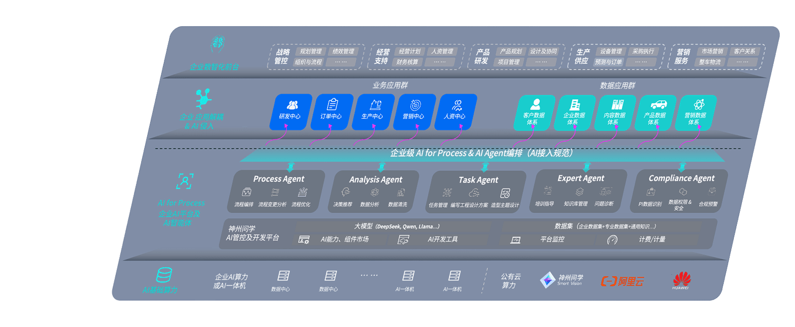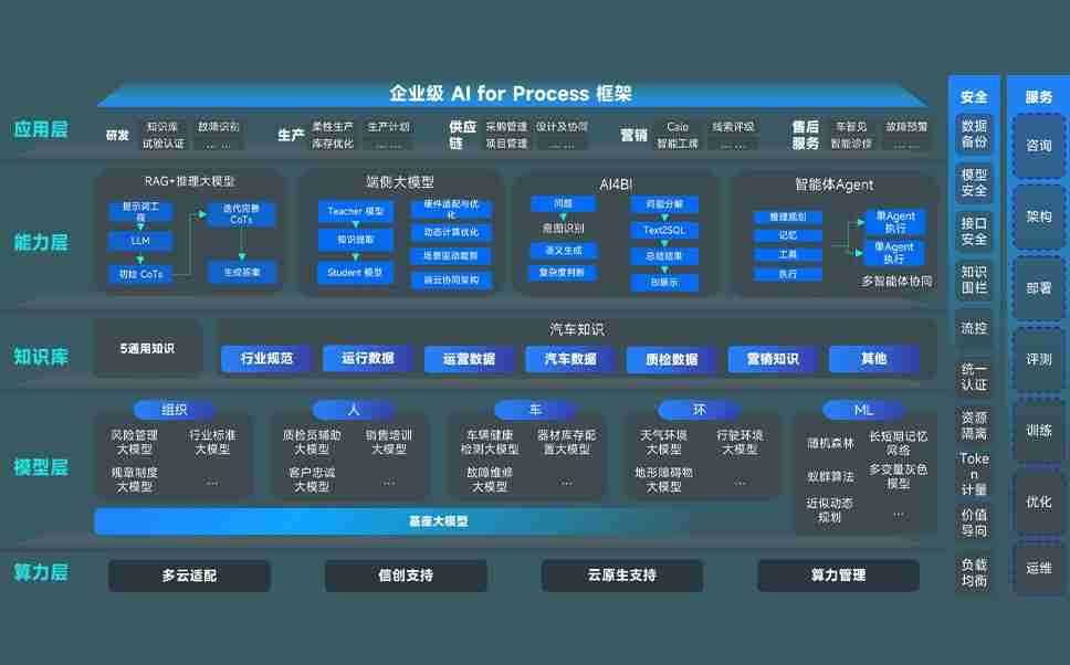 端到端的一站式AI工作空间深度融合了从企业战略规划到日常经营的全流程业务板块,,,,定向解决车企内部领域多、、、部门多、、、链条长、、、、场景碎片化等难题,,,支持车企快速构建以AI为核心的生产力写作体系,,,,实现任务执行与AI能力的无缝集成与交互